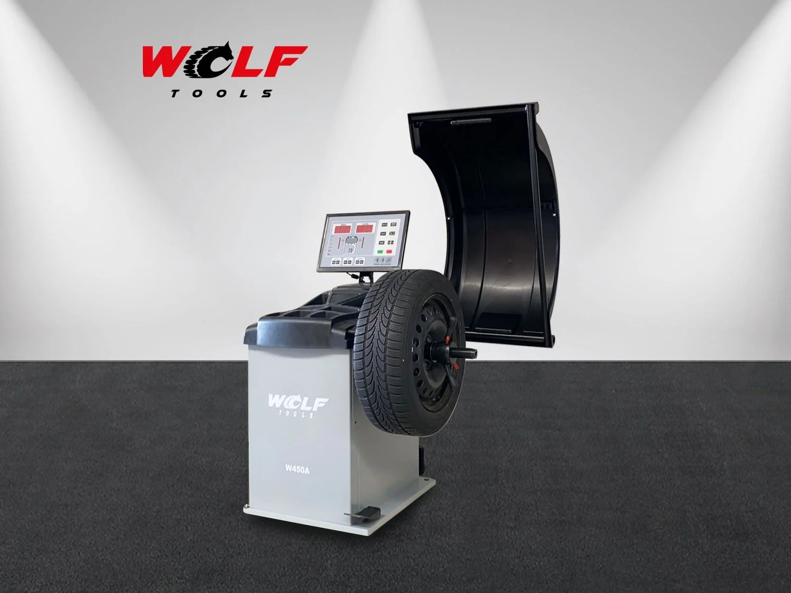 De Wolf W450A is een zeer complete professionele balanceermachine met volautomatisch selecteren van de wieldata, laser, LED verlichting en een groot overzichtelijk display. Plakken is mogelijk op 12-uur, op 6-uur of middels de 3D inmeetarm.