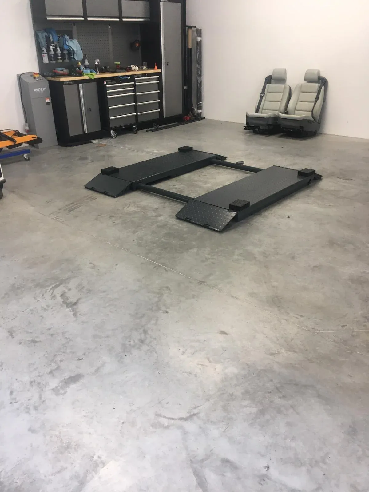 De Wolf WKS-30L is een professionele schaarhefbrug/poetsbrug/bandenbrug met een hefvermogen van 3000 kg. Uniek aan dit model is het START UP device, dat ervoor zorgt dat de brug vanaf het begin zijn hefvermogen haalt. Dit kantelmechanisme wordt normaal gezien alleen bij de hoge bruggen toegepast. De brug is uitgerust met Rexroth hydrauliek (Bosch onderneming, de nr. 1 wereldwijd) en is volledig elektrisch – geen luchtaansluiting vereist. Let op: bij 230 volt is een 16A C (extra traag) zekering vereist.