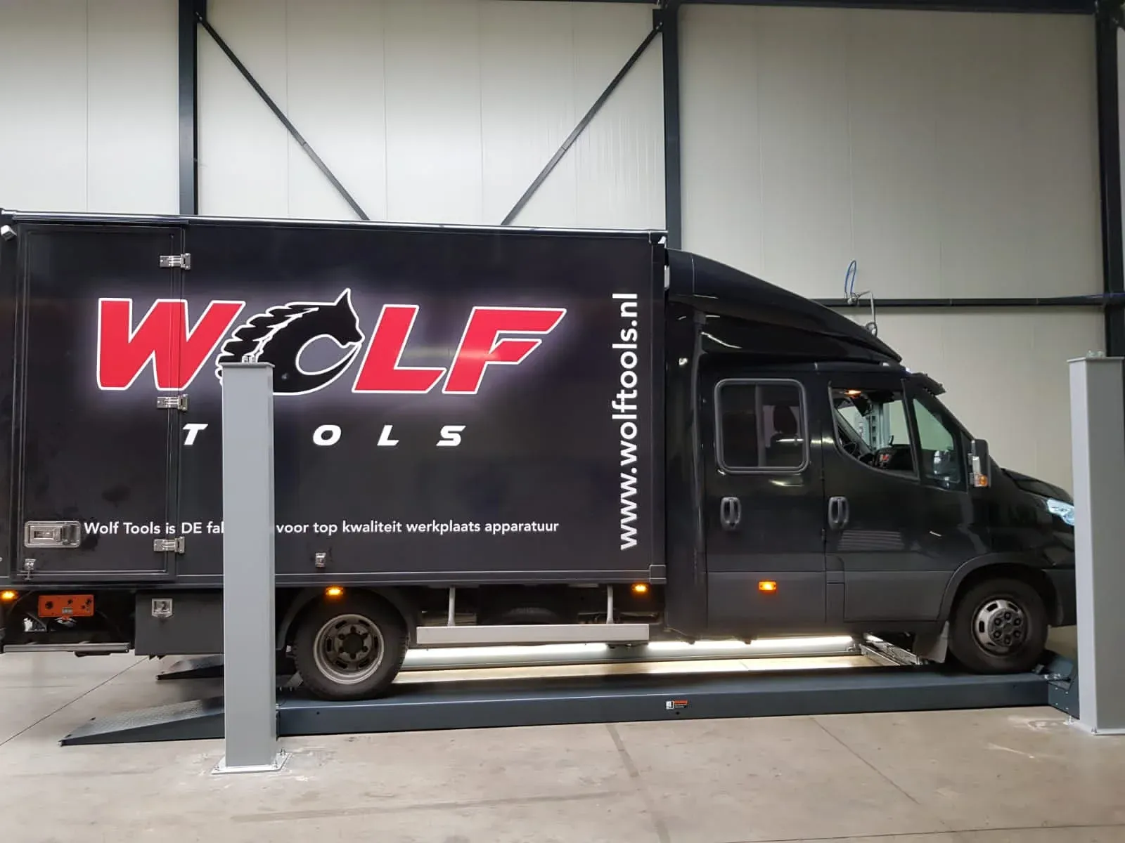 Top kwaliteit 4-koloms hefbrug, voorzien van gladde rijbanen. Deze brug van Wolf is een veelzijdige brug waarmee de grootste en zwaarste bedrijfsbussen en campers gelift kunnen worden. De Wolf WL464L heeft veel ruimte tussen de palen, waardoor deze uitermate geschikt is voor het gebruik van 3D uitlijncomputers. Na installatie kan de brug direct gekeurd worden voor APK gebruik. Standaard op voorraad in de kleur RAL 7016 antraciet.